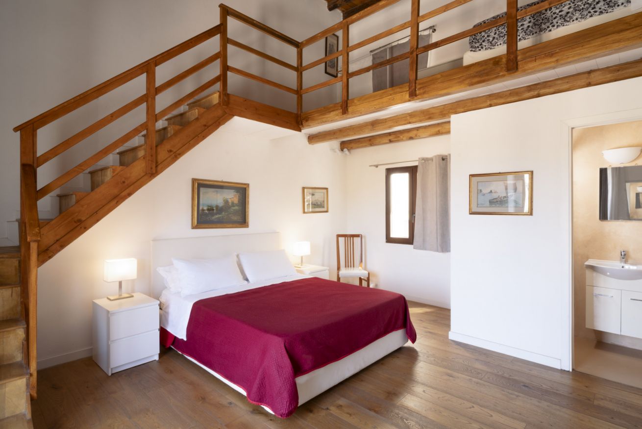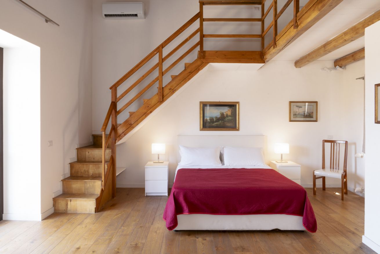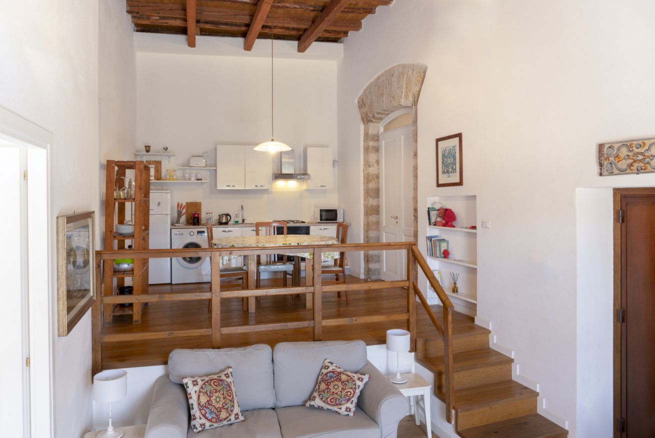 L'appartamento, di circa 120 mq, si compone di 3 ampie stanze in sequenza, tipiche delle case antiche siciliane. La prima, con divani e tv da 50 pollici, e la seconda, con divano, poltrona e tavolo con sedie, sono adibite a stanze soggiorno, mentre la terza a camera da letto principale, con bagno e tv all'interno. È inoltre presente in questa camera un soppalco con letto di una piazza e mezzo, con relativi comodino, cassettiera e appendiabiti. Un altro soppalco con letto matrimoniale è presente nella seconda stanza, con relativi cassettiera, comodini e tv. Un secondo bagno si trova nella parte iniziale della Casa. L'appartamento può dunque ospitare in tutto 5 persone. Si rappresenta che è presente nella seconda stanza un divano letto, adatto però soltanto a bambini o adolescenti, essendo munito di un materasso di soli 5 cm.