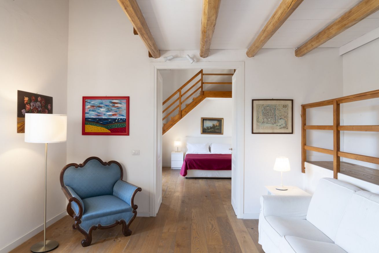 La casa si trova su Piazza Magione, forse la più bella della città per lo spazio e la luce che la contraddistinguono, al secondo piano di una palazzina di tre piani, totalmente ristrutturata, senza ascensore, di inizio 800. Sono presenti sul posto diversi ristoranti e pub, in grado di soddisfare le esigenze di ogni tipo di clientela.