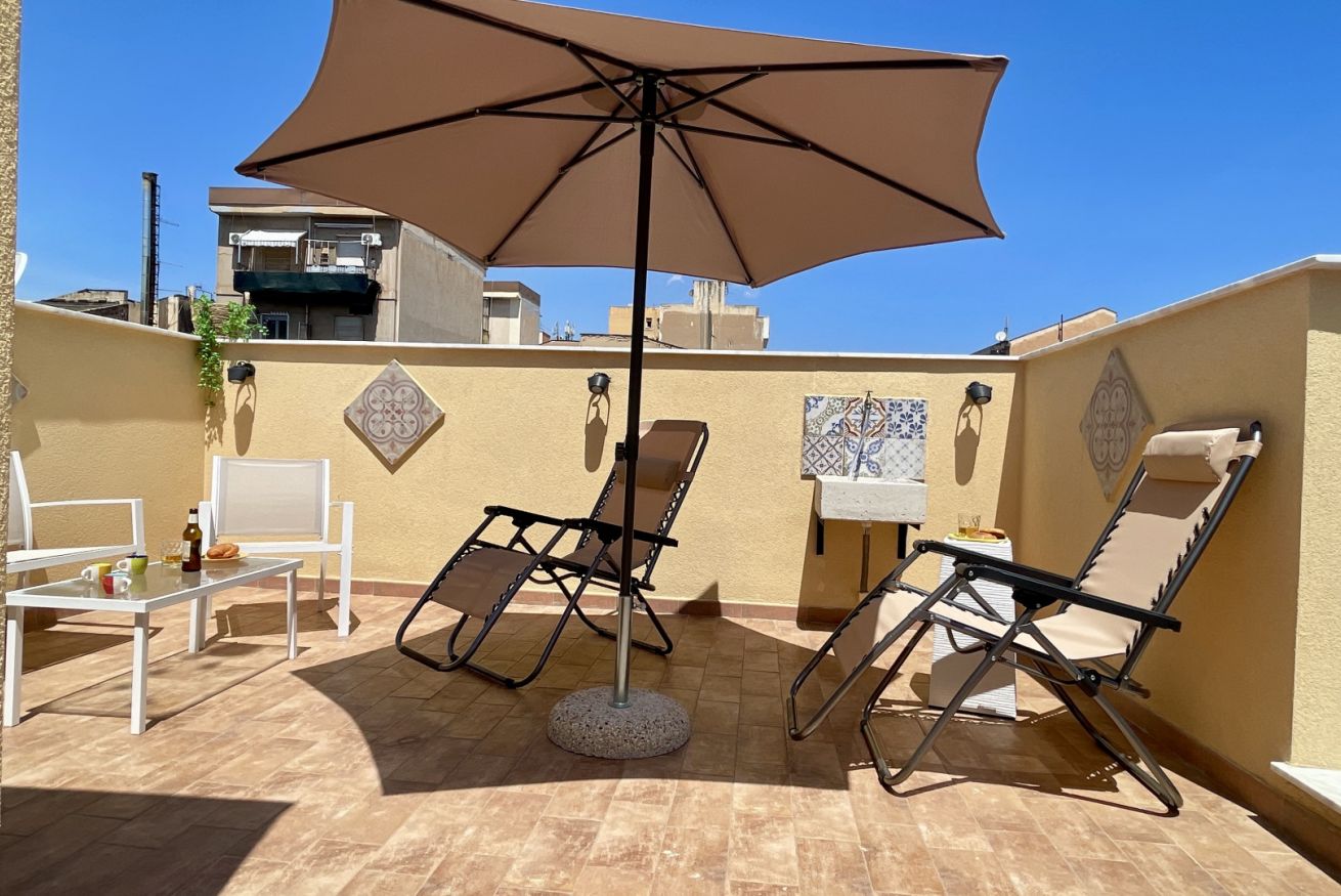 Elegante palazzina privata su due piani ad uso esclusivo, finemente ristrutturata, in Via Oreto a pochi passi da via Maqueda. Ogni appartamento offre soggiorno con divano letto, cucina attrezzata, camera matrimoniale e bagno en-suite. Magnifiche terrazze, ideali per colazioni e relax al sole. Wi-Fi veloce incluso. Posizione strategica vicino alla stazione centrale, perfetta per esplorare Palermo.