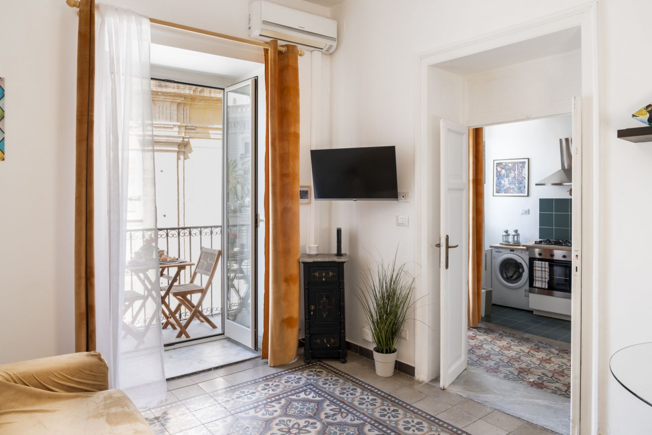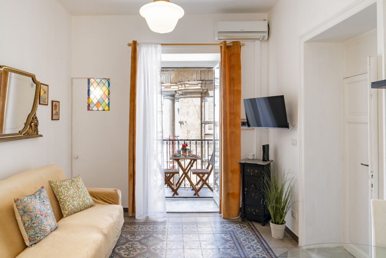 Nel cuore di Palermo, in via Giovanni Meli, ti aspetta un elegante appartamento con vista mozzafiato sulla chiesa di San Domenico. Il balcone si affaccia direttamente sull’omonima piazza, regalando un’atmosfera unica, autentica e suggestiva. Dotata di aria condizionata, Wi-Fi, lavatrice, cucina accessoriata e pavimenti originali d’epoca, la casa è perfetta per vivere la città da una prospettiva indimenticabile. I mercati di Palermo e le principali attrazioni sono tutti raggiungibili a piedi.