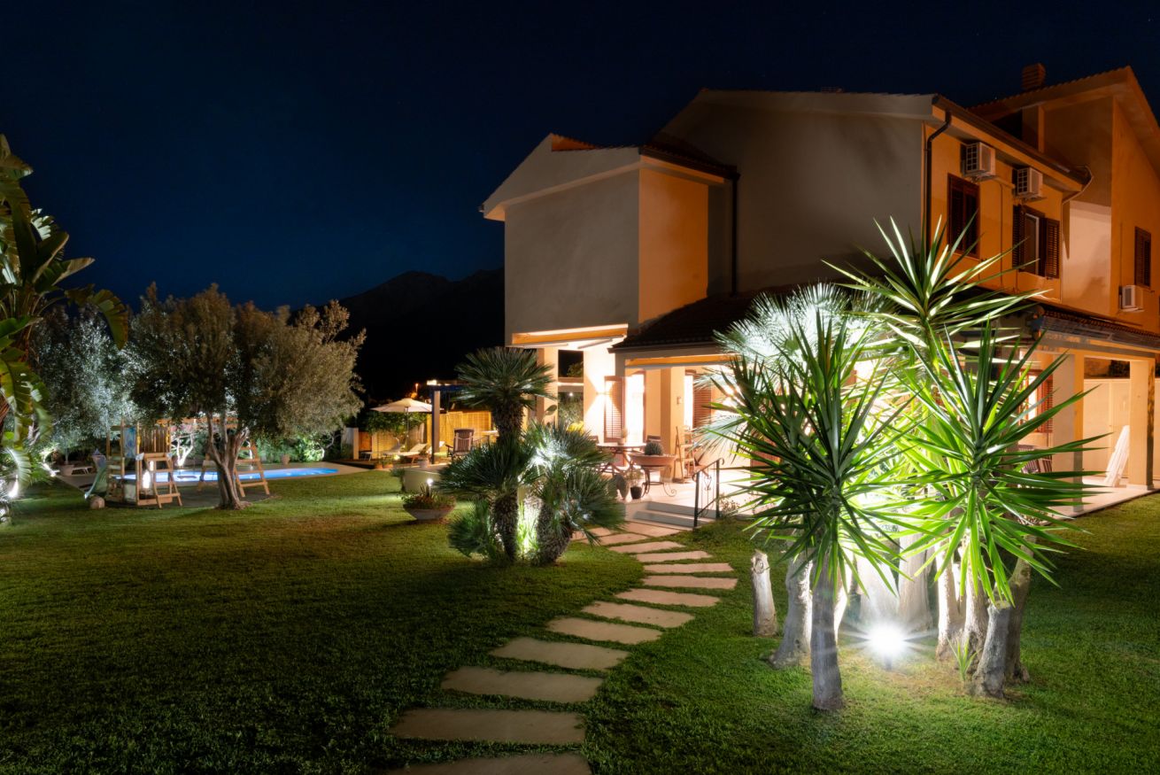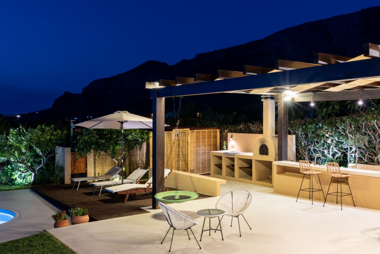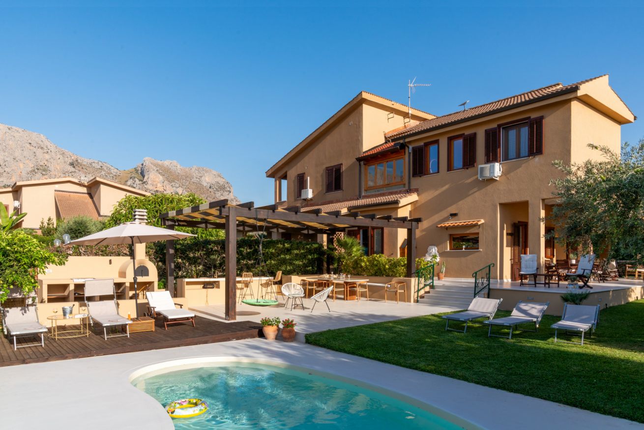 Lasciatevi conquistare dallo splendido ambiente di questa elegante villa, situata a pochi km da Palermo, ideale per famiglie o gruppi di amici. Completamente ristrutturata, offre comfort in ogni stagione, con ampi spazi interni ed esterni. Ospita fino a 6 persone in 3 camere da letto, 3 bagni e una jacuzzi privata interna con affaccio sul golfo di Terrasini. All’esterno, la piscina, un’area giochi per bambini e una cucina esterna con forno in muratura renderanno uniche le vostre serate estive.