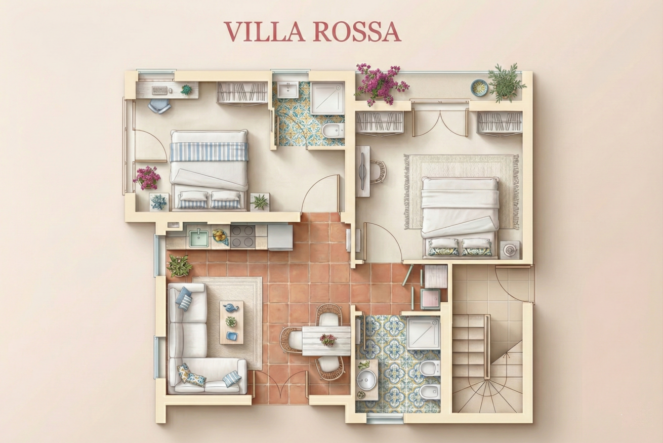 Vivi l'essenza dell'isola a Villa Rossa: un rifugio esclusivo vicino il centro, dove la privacy è assoluta. Goditi il rigoglioso giardino privato con amaca, solarium e cucina esterna con BBQ per cene sotto le stelle. Interni luminosi con 2 camere matrimoniali e 2 bagni. Posizione strategica per esplorare le calette più belle; parcheggio auto e bici interno. La tua oasi di pace a pochi minuti dal porto, perfetta per chi cerca comfort, stile e l'autentica anima delle Egadi.